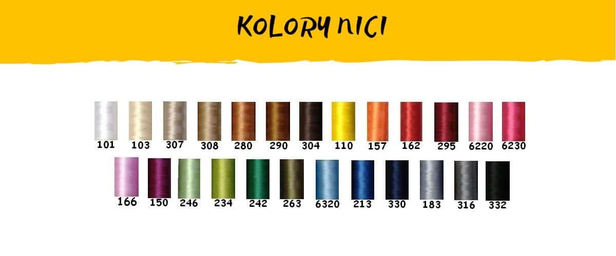 - wybierz kolor haftu, czyli nici z dostępnej palety kolorów, którymi będzie wyhaftowane imię i motyw
