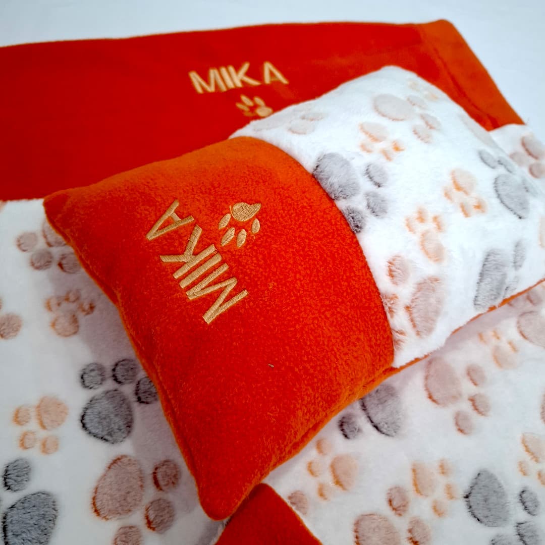 Jak zamówić zestaw (poduszka i koc-mata) z imieniem psa?