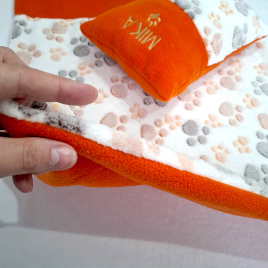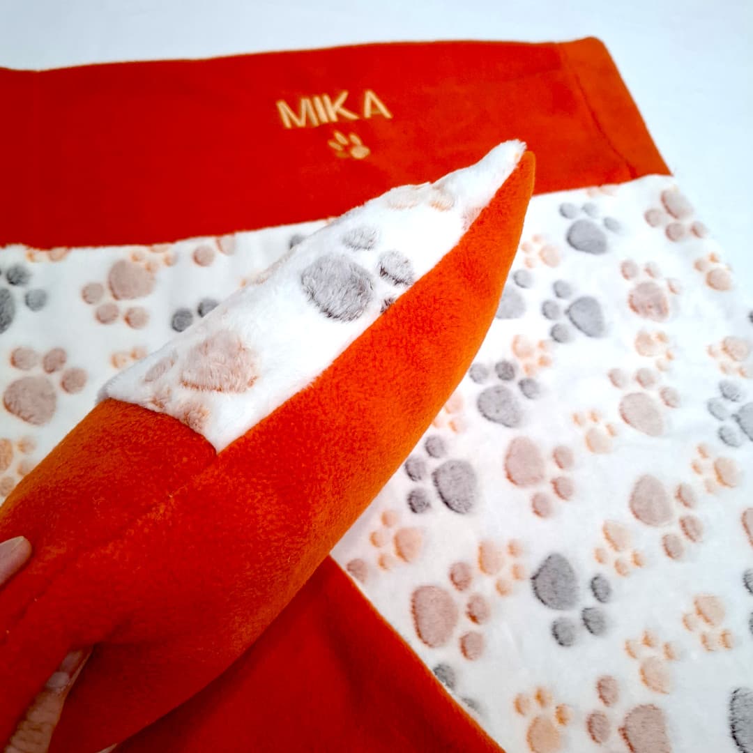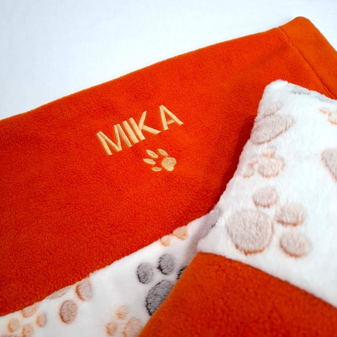 Personalizacja sprawia, że zestaw jest jedyny w swoim rodzaju - dokładnie tak, jak Twój pies. Prostokątna poduszka i dwuwarstwowy ciepły kocyk dla psa z miękkiego polaru minky i z imieniem wykonane są specjalnie dla Twojego pupila. To Ty wybierasz rozmiar zestawu, kolor haftu - imienia psa i motyw, kolor gładkiego polaru i wreszcie decydujesz o rodzaju czcionki jaką ma zostać wyhaftowane imię.