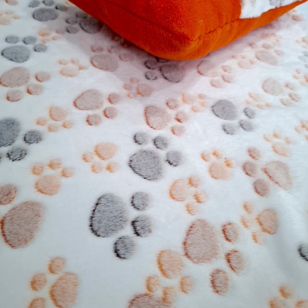 Zestaw dla psa poduszka koc - minky w brązowe łapki